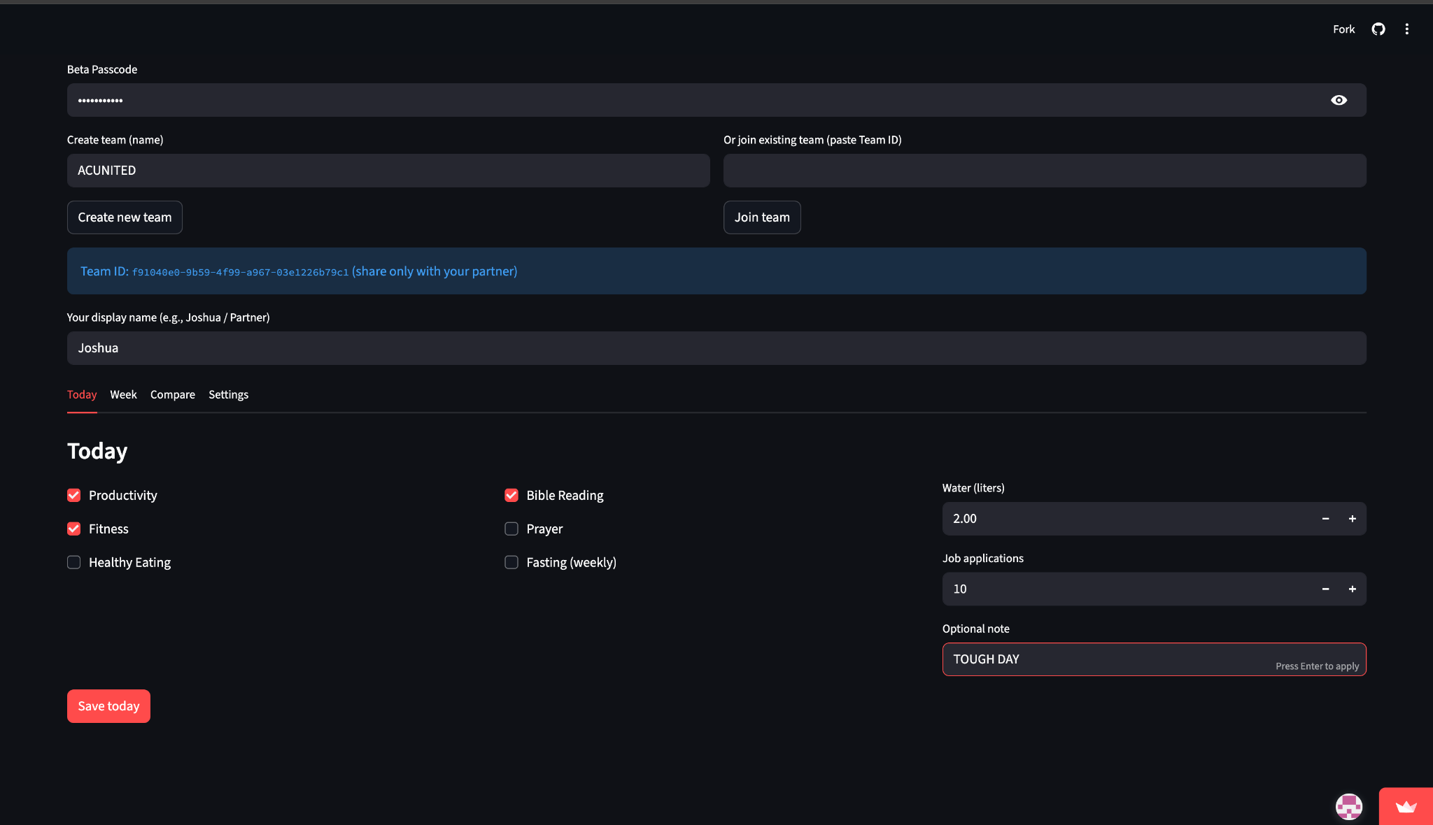 I built a data-focused Streamlit dashboard to track habits and weekly trends, making personal progress easy to review quickly.