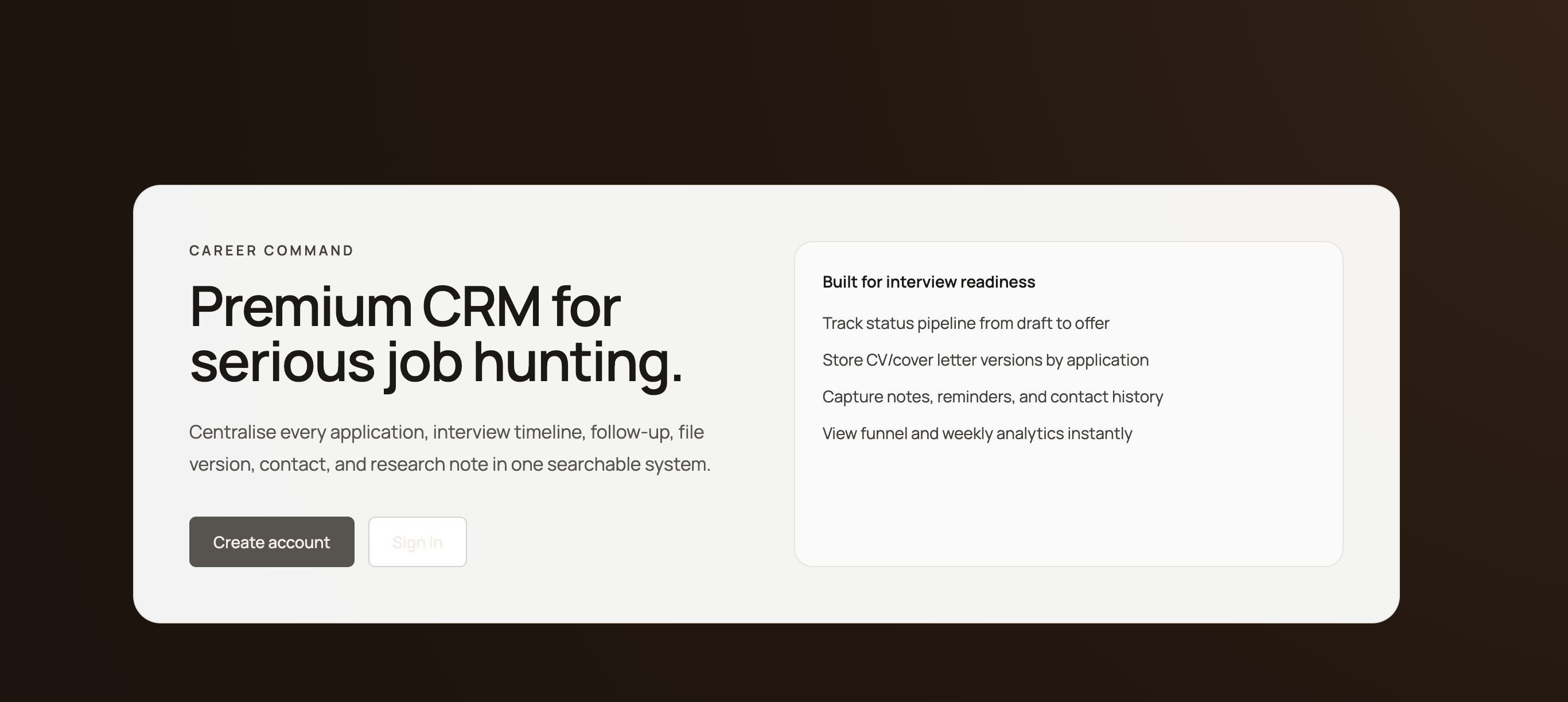 Designed and delivered a premium job application CRM with pipeline management, reminders, templates, analytics, and secure multi-user data controls using Supabase RLS.